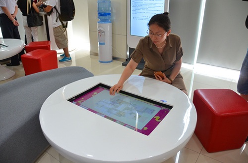 互動(dòng)茶幾可通過(guò)互動(dòng)查詢(xún)網(wǎng)點(diǎn)信息、查詢(xún)業(yè)務(wù)介紹、業(yè)務(wù)辦理、休閑娛樂(lè)游戲、輕松了解房貸、留學(xué)、理財(cái)?shù)茹y行產(chǎn)品及服務(wù),在娛樂(lè)中了解感興趣的銀行業(yè)務(wù).